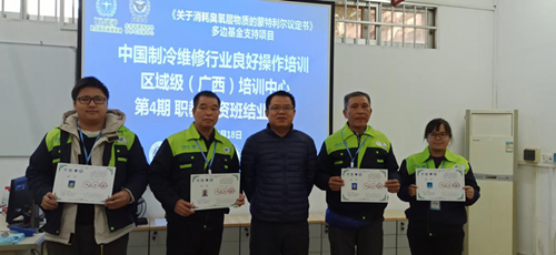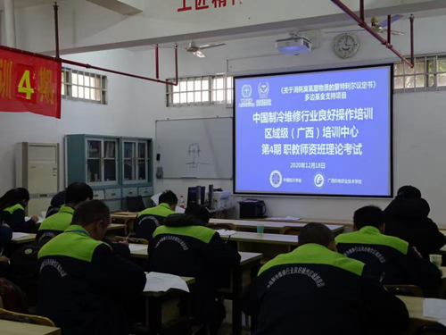 黄政艳副院长在致辞对中国制冷维修行业良好操作区域级(广西)培训中心职业学校师资班开班表示热烈祝贺,对中国制冷学会、广西制冷学会、桂物金岸制冷空调技术有限公司、南宁市快朗冷气设备有限公司等行业企业一直以来对我院制冷空调专业人才培养给予的大力支持表示衷心的感谢!黄副院长介绍中国制冷维修行业良好操作培训项目是联合国环境规划署《蒙特利尔议定书》多边基金支持项目,具体由生态环境部对外合作与交流中中心负责实施,中国制冷维修行业良好操作区域级(广西)培训中心2019年12月24日正式揭牌,由中国制冷学会和我院联合主办。同时介绍了学院“十四五”发展规划描绘的新蓝图提出的“再造一个新机电”,实现三个“翻一番”战略目标和“123720”发展思路,加快学院发展,积极推动校企合作、深化产教融合,奋进机电扬帆再起航!对各位学员和企业朋友来校培训几点简单要求:一是遵守培训安排、纪律要求,认真参加培训;二是爱护培训设备设施,积极参加训练;三是加强交流、增进友谊、促进合作;四是宣传节能环保理念,实践推广中国制冷维修行业良好操作。