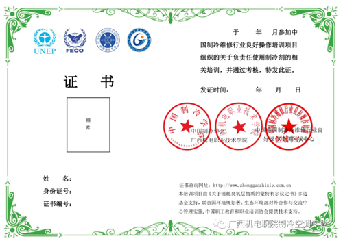 二、培训对象:制冷空调设备生产、安装、运行维护、维修企业的法人代表、管理人员、操作人员。每期30人左右,可协商专场开设企业冠名班,如“xxx班”。培训证书官网可查。