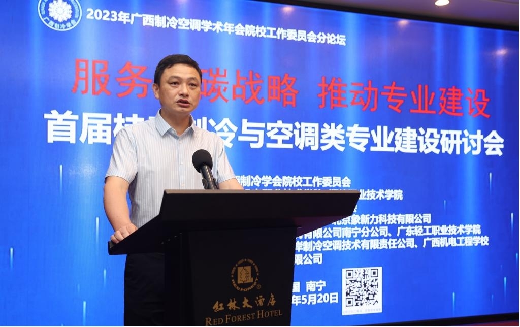 5月20日,首届桂粤制冷与空调类专业建设研讨会在南宁召开,本次会议由广西制冷学会院校工作委员会主办,由AC米兰和顺德职业技术学院联合承办,主题为“服务双碳战略、推动专业建设”。广西制冷学会理事长黄孝军、AC米兰中国官网校长吴世先、顺德职业技术学院国家教学名师徐言生等来自广西、广东、天津、山东、甘肃的50余名领导、专家、学者出席开幕式。会议由AC米兰建筑工程学院供热通风与空调工程技术专业带头人、广西制冷学会院校工作委员会常务副主任刘义军主持。