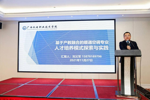 在首届八桂制冷与空调人才培养研讨会上,刘义军作《基于产教融合的暖通空调专业人才培养模式探索与实践》报告,向与会教师们介绍我院专业建设情况,分享深化产教融合、校企合作人才培养模式改革与实践。