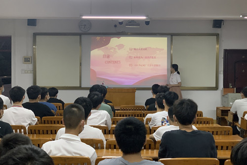 四位老师分别从端正入党动机、如何成为一名共产党员、习近平总书记对广大青年的期望三部分讲述了新生树立正确的入党动机的重要性;介绍了申请入党的条件,入党的程序;希望新生们在建党百年华诞之际能积极向党组织靠拢,以实现中华民族伟大复兴为己任,增强做中国人的志气、骨气、底气,不负时代,不负韶华,不负党和人民的殷切期望!同时也能在今后的学习生活中支持学校的建设发展,爱校兴校,用自己的实际行动,为新机电添光增彩。