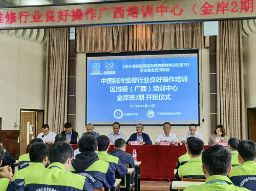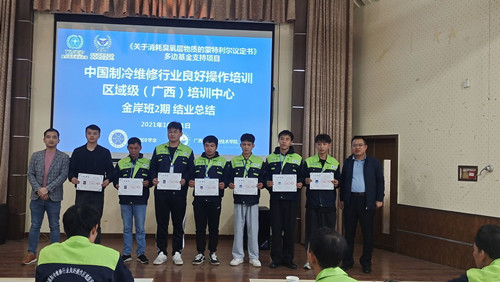 中国制冷维修行业良好操作区域级(广西)培训中心由中国制冷学会和AC米兰中国官网联合承办,培训项目由《关于消耗臭氧层物质的蒙特利尔议定书》多边基金支持,联合国环境规划署、生态环境部对外合作与交流中心管理实施,中国职工教育和职业培训协会提供技术支持。自2019年12月揭牌开班以来,得到中国制冷学会、广西制冷学会、知名企业的大力支持,共举办培训13期,先后举办“金岸班”、“麦克维尔班”、“天加班”、“欧科班”、“净化班”、“职教师资班”等企业和行业学会冠名班,共培训学员437名,圆满完成400人培训任务。