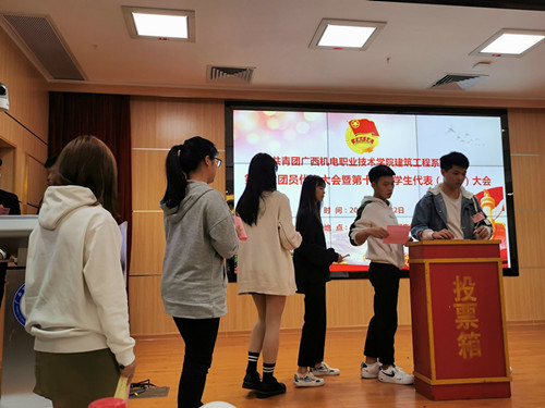 团员的民主意志和权利,是广大团员体验、履行代表民主权利的重要体现,希望全体与会代表要端正态度,认真履责,正确行使大会赋予的民主权利。同时,刘书记也对本届团学干部工作一年来的工作及表现表示了充分肯定。他希望广大学生干部要积极成为了解学生诉求的倾听者、努力成为学生活动的参与者、共同成为“美好机电”的建设者,并对全体团学干部及与会代表们提出了四点希望: