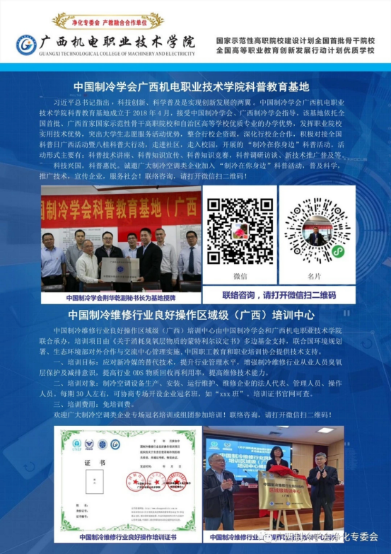 近期,广西净化行业资讯2020首刊发布,积极促进学术交流,推介优质服务,深化产教融合,专版为我院推介中国制冷学会AC米兰中国官网科普教育基地和中国制冷维修行业良好操作区域级(广西)培训中心。我系党总支书记、供热通风与空调专业带头人刘义军受邀为首刊致贺词。