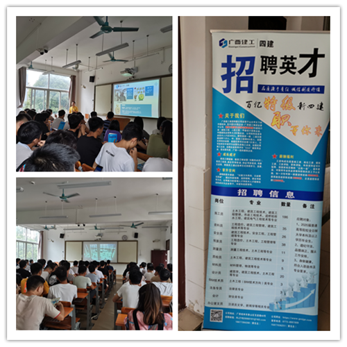 10月22日下午,广西建工集团第四建筑工程有限责任公司(以下简称“四建”)团委书记黄文韬及公司组织人事处副处长黄新涛等一行五人到我院开展公司招聘宣讲。我系工程造价、建筑工程技术、工业设备安装工程技术等专业的应届毕业生共计70余人参加了宣讲会,招聘宣讲会在1203教室进行。