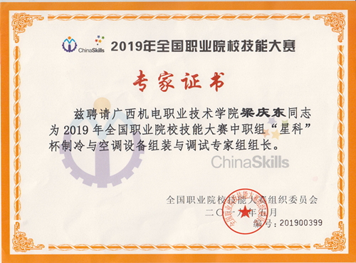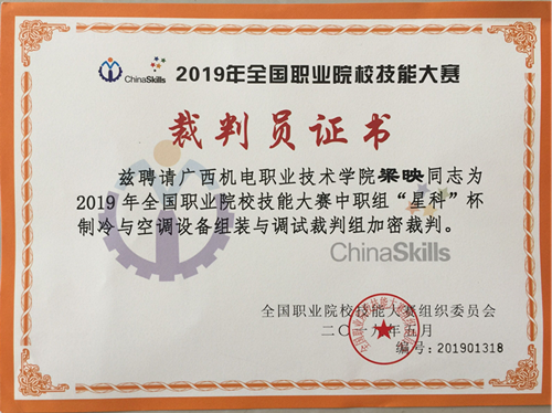 我系空调专业3位教师被聘为2019全国职业院校技能大赛专家裁判
