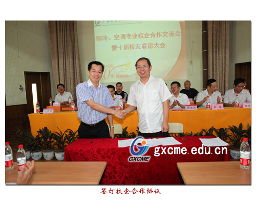 本次大会的主题是“感恩、联谊、合作、发展”。会上,学院副院长蒋文沛致辞,代表学院热烈欢迎行业企业领导、嘉宾及校友代表的到来,感谢行业、企业、校友及各届朋友一直以来对学院的支持。接着,广西制冷学会会长李申代表行业学会致辞,表示学会将发挥好桥梁纽带作用,促进行业内企业、学校、科研机构多方面的合作交流,形成紧密的工作关系和互动机制,希望校企合作结出更多丰硕成果。随后,广西美的暖通设备销售有限公司经理李道良、2000级校友佛山市四为电器有限公司副总经理黄诚、在校生廖宜龙分别代表企业、毕业生、在校生做了发言。建筑工程系党总支书记蓝兴洲分别与南京天加空调设备有限公司南宁分公司总经理赖家馨、广西南宁良凯制冷设备工程有限公司总经理韦伟祥签订了校企合作协议。