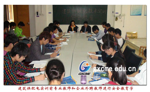 根据教学安排,11月14~25日建筑10级学生进行了为期两周的建筑供配电技术实训。为了强化教学过程的实践性、开放性和职业性,建筑工程系聘请了南南铝业股份有限公司吴海副总工程师、南宁广开电气有限公司高级工程师周工与我系周玲、满高华老师共同担任实训指导教师。