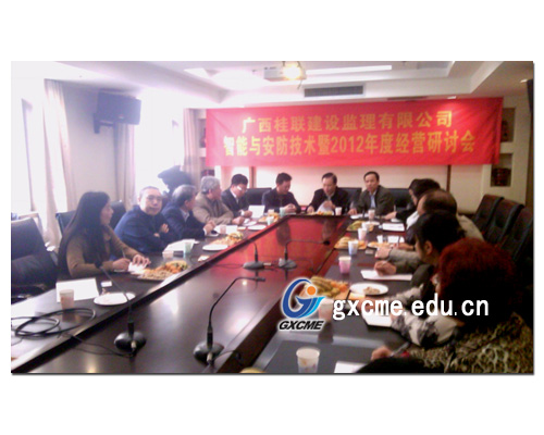 2012年3月25日上午,广西桂联建设监理有限公司智能与安防技术暨2012年度经营研讨会在广西发改委培训中心举行。区发改委党组成员、纪检组长蒋维玕,以及广西大学、邕江大学、广西经贸职业技术学院等院校的相关领导和专家参加了此次研讨会。建筑工程系李晓东主任、周玲副主任应邀参加此次研讨会。