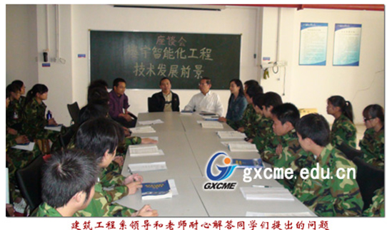 座谈会中,建筑工程系领导和老师分别给同学们介绍了当前全国乃至世界智能楼宇的发展历史和建设情况,强调楼宇专业是广西“14+4”千亿元产业、北部湾经济区发展“节能产业与环保产业”的急需专业,分析了楼宇专业的就业形势和就业前景。领导和老师还对同学们提出了一些具体学习建议。