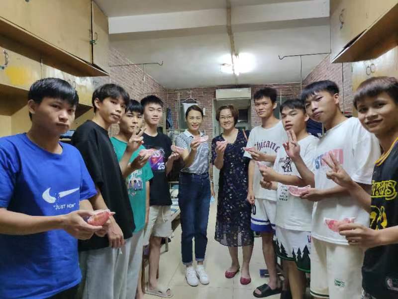 李哲院长一行走进风华园宿舍与同学们进行亲切交谈,共同品尝月饼及柚子,详细询问同学们的家乡、学习和生活等情况,诚恳征求同学们对学院的意见建议,并就学习就业、住宿环境以及思想动态等方面与同学们进行深入交流。