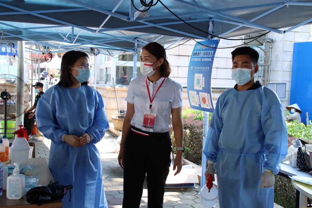 现代物业管理专业带头人陈亮老师说到:“虽然天气炎热造成身上被汗水湿透,手被汗水泡得发白,脱下防护服,衣服都是湿透的,但是能够守护好校门,迎接2022级新生的到来,我觉得一切都是值得的。”