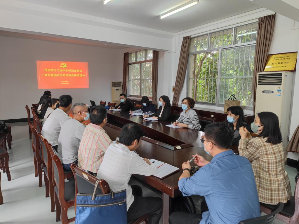 10月18日,建筑工程学院组织教职工召开会议,传达学习习近平总书记在参加党的二十大广西代表团讨论时的重要讲话精神,继续讨论党的二十大报告。党总支副书记卜庭梅主持会议并讲话。