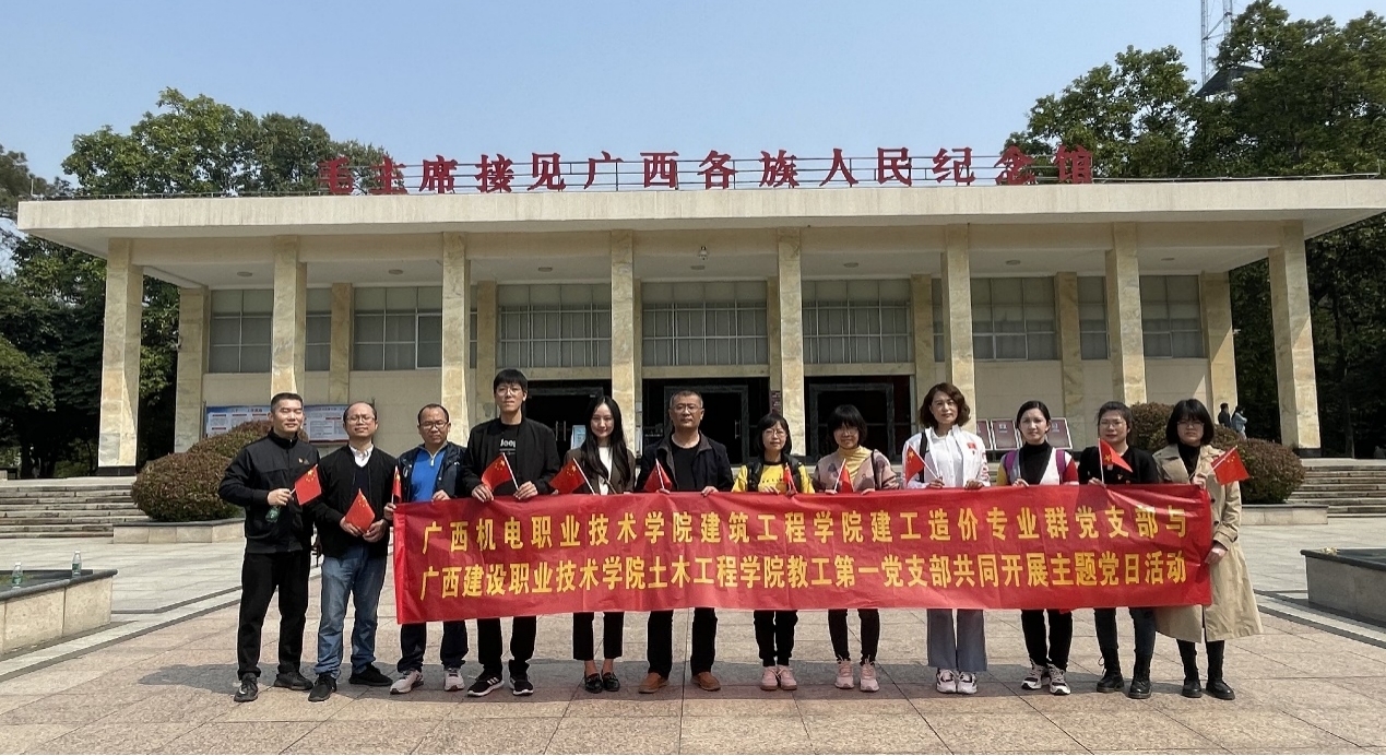 为深入学习宣传贯彻党的二十大精神,落实常态化长效化开展党史学习教育要求,不断增强党员、干部听党话、跟党走的政治自觉、思想自觉、行动自觉。3月4日,建筑工程学院建工造价专业群党支部与广西建设职业技术学院土木工程学院教工第一党支部到南宁市人民公园共同开展“走进革命历史,传承红色基因”党建联创联建主题党日活动,支部全体党员参加活动。