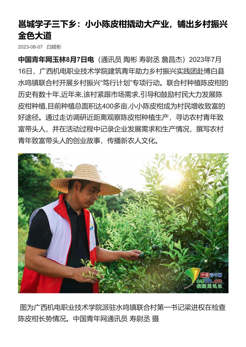 原文链接:邕城学子三下乡:小小陈皮柑撬动大产业,铺出乡村振兴金色大道 (cycnet.com.cn)
