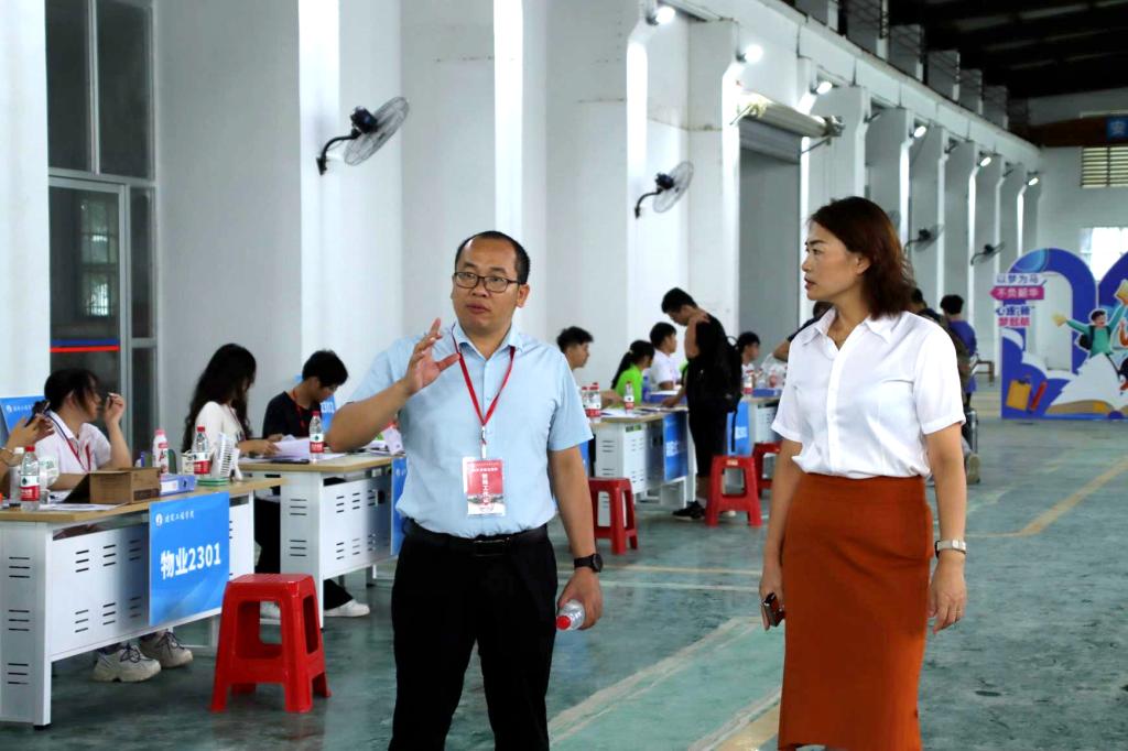 9月9日,建筑工程学院2023级1100余名新生如约而至。学校党委书记黄小敬,党委副书记、校长吴世先,党委副书记陈科鹤来到建筑工程学院实训基地,与迎新工作人员及新生进行亲切交谈,详细了解新生报到情况,对大家的迎新工作给予充分肯定,希望迎新工作人员和志愿者热情、细致、耐心地做好迎新工作。