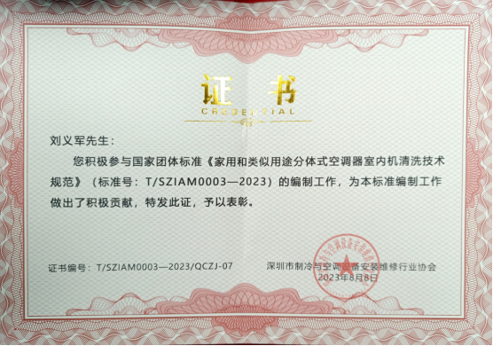 日前,国内首个《家用和类似用途分体式空调器室内机清洗技术规范》团体标准出台。该标准由深圳市制冷与空调设备安装维修行业协会组织编订并发布。我院教师刘义军副教授作为特聘专家参编了该规范。