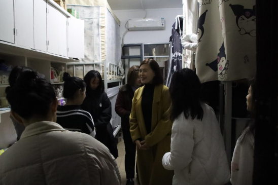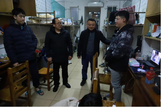 2024年3月3日,为关心学生返校情况及返校后的生活及思想状况,学院党委书记罗满、院长李哲、副书记卜庭梅、副院长谢启星带领学工团队到宿舍进行走访。