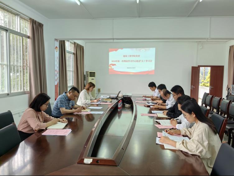 3月28日,建筑工程学院党委召开2024年第一次理论学习中心组(扩大)学习会,深入学习贯彻全国两会精神和习近平总书记关于新质生产力的重要论述,学习刘宁同志署名文章《坚定不移推进高质量发展 奋力谱写中国式现代化广西篇章》,联系思想和工作实际,进行研讨交流。党委书记罗满,党委副书记卜庭梅,副院长郭容宽,各党支部委员,学院办公室主任等参加会议。