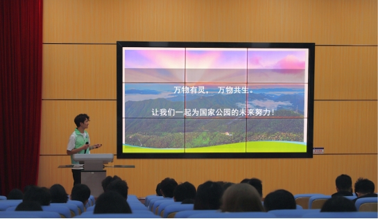 3月18日,学院“绿碳先锋”宣讲团在学校金钻讲堂面向150余位师生开展“保护生物多样性·守护国家公园”主题宣讲活动。通过理论宣讲、互动问答、短视频等形式,向师生们普及国家公园在生态屏障、物种保育和碳汇功能中的重要作用,并针对“青年大学生在生态文明建设中的角色及作用”进行分组讨论。通过本次志愿宣讲,引领青年学子做生态文明的践行者、传播者和守护者,为共建绿色生态校园注入青春力量。