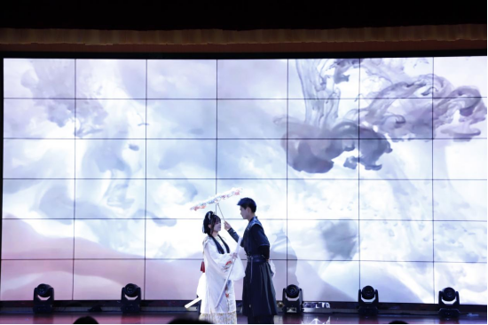 晚会在线上加线下的近千名观众的期待中拉开帷幕。舞台光影绚烂,多元节目轮番登场将观众带入了一个充满青春活力的世界。由辅导员、校友、学生们带来的流行毕业金曲唤起了毕业生在校学习生活的情感回忆东方美学与现代舞台完美融合国风走秀为大家送上视觉盛宴以铿锵文字回顾校园点滴的诗朗诵传递毕业生对母校的依依不舍。通过本次晚会,大家用歌声与旋律诉说着校园回忆,传递着离别不舍与对未来的期许。