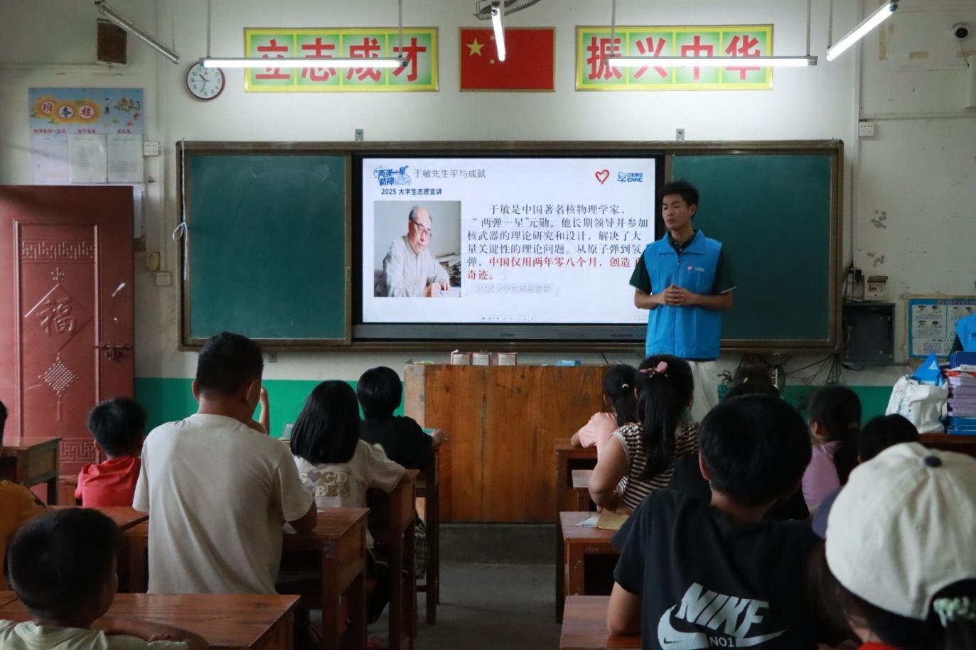 为弘扬传承两弹一星精神,厚植青少年家国情怀,激发科技报国之志,2025年7月23日,AC米兰中国官网绿色建筑与低碳技术学院红砖青年宣讲团走进博白县联合村小学,开展两弹一星精神主题宣讲活动,吸引了30余位学生参与此次活动通过生动宣讲、互动问答、拼图体验和文创手绘等形式,将红色基因融入乡村教育,为联合村孩子带来一堂别开生面的大思政课