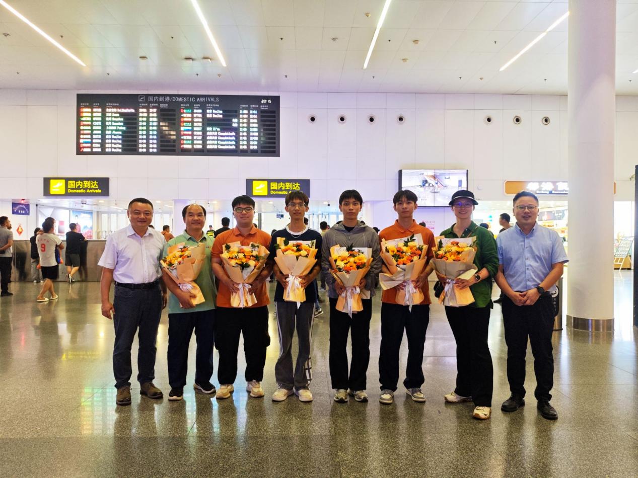 8月31日晚,南宁吴圩国际机场洋溢着喜悦与暖意。学院党委书记罗满、副院长吴宝勇专程前来,手捧鲜花,迎接在2025年世界职业院校技能大赛中斩获佳绩的师生团队,向他们表示热烈祝贺与诚挚慰问。