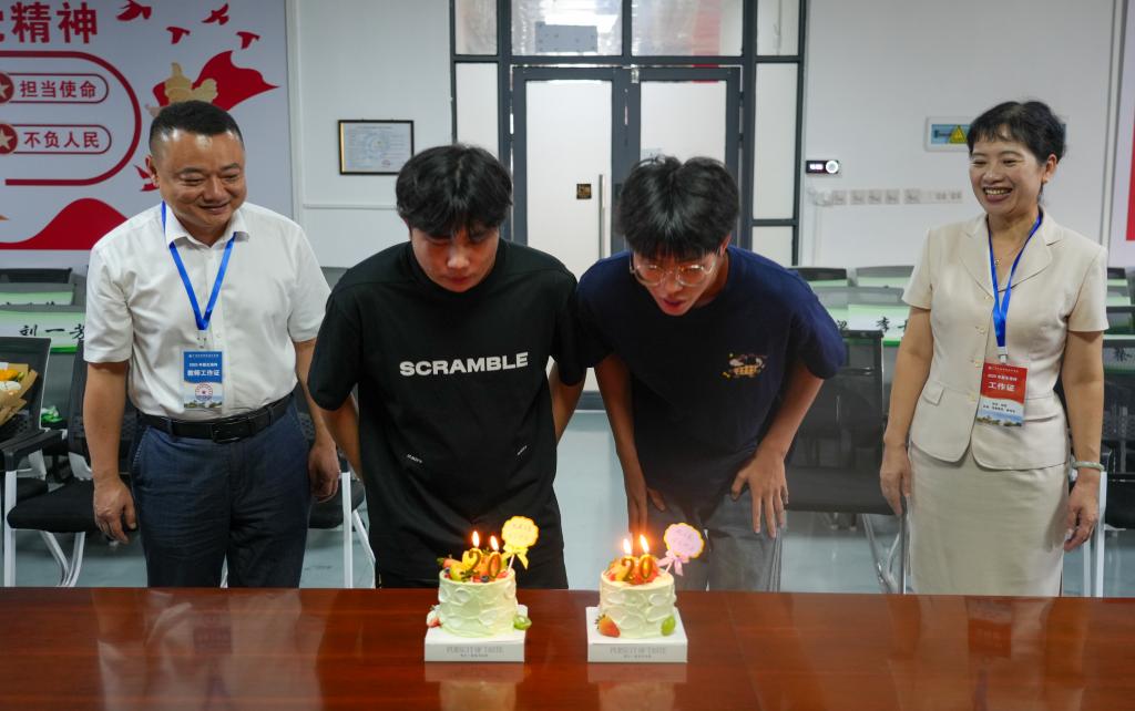 环湖秋色映机电,迎新庆生正当时。9月16日下午,学院精心准备的2025级新生生日会在学院会议室温暖启幕,为2名报到当日过生日的新生“小寿星”送上来自机电大家庭的第一份甜蜜祝福。学校副校长林胜,学生工作处心理健康教育中心主任董蓓,学院党委书记罗满、学院党委副书记卜庭梅以及新生辅导员、辅导员助理齐聚一堂,共同见证这一温馨时刻。