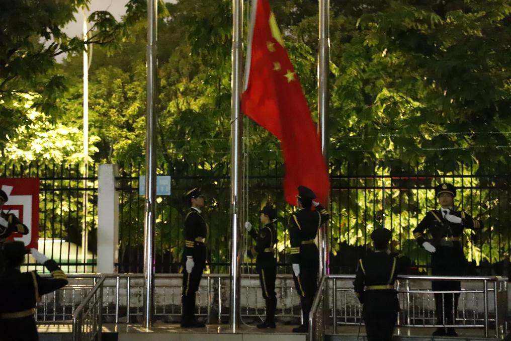 上午7时整,升旗仪式正式开始。国旗护卫队成员身着笔挺制服,迈着坚定有力的步伐,护卫着五星红旗缓缓走向升旗台。《义勇军进行曲》激昂的旋律响起,全体师生肃立行注目礼,在雄壮的国歌声中,鲜艳的五星红旗冉冉升起,映照着新一年的希望与使命。