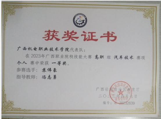 3.2023年广西职业院校技能大赛汽车技术赛项一等奖