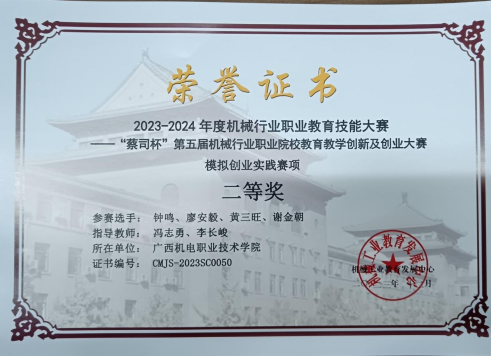 1. “蔡司杯”第五届机械行业职业院校教育教学创新及创业大赛二等奖
