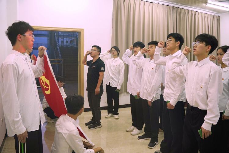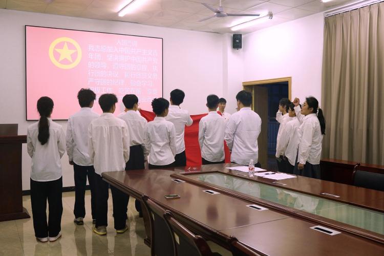 “我志愿加入中国共产主义青年团,坚决拥护中国共产党的领导……”在党支部刘润宇老师带领下,在场团员右手握拳,庄严宣誓。一声声铿锵有力的誓言在教室内回荡,展现了新团员们的坚定信念和蓬勃朝气。