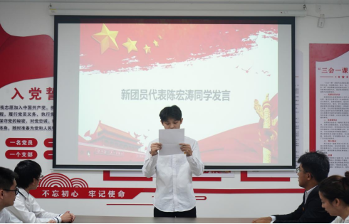 汽车工程学院宁聪同学作为入团介绍人宣读《团章》中有关团员的义务和权利,明确团员必须履行的义务及团员享有的权利。