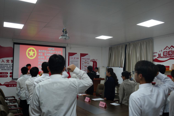 由学院四名团员出旗,汽车工程学院学生党支部周伟一老师带领新团员面对团旗进行了庄严的入团宣誓。