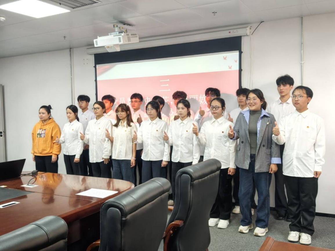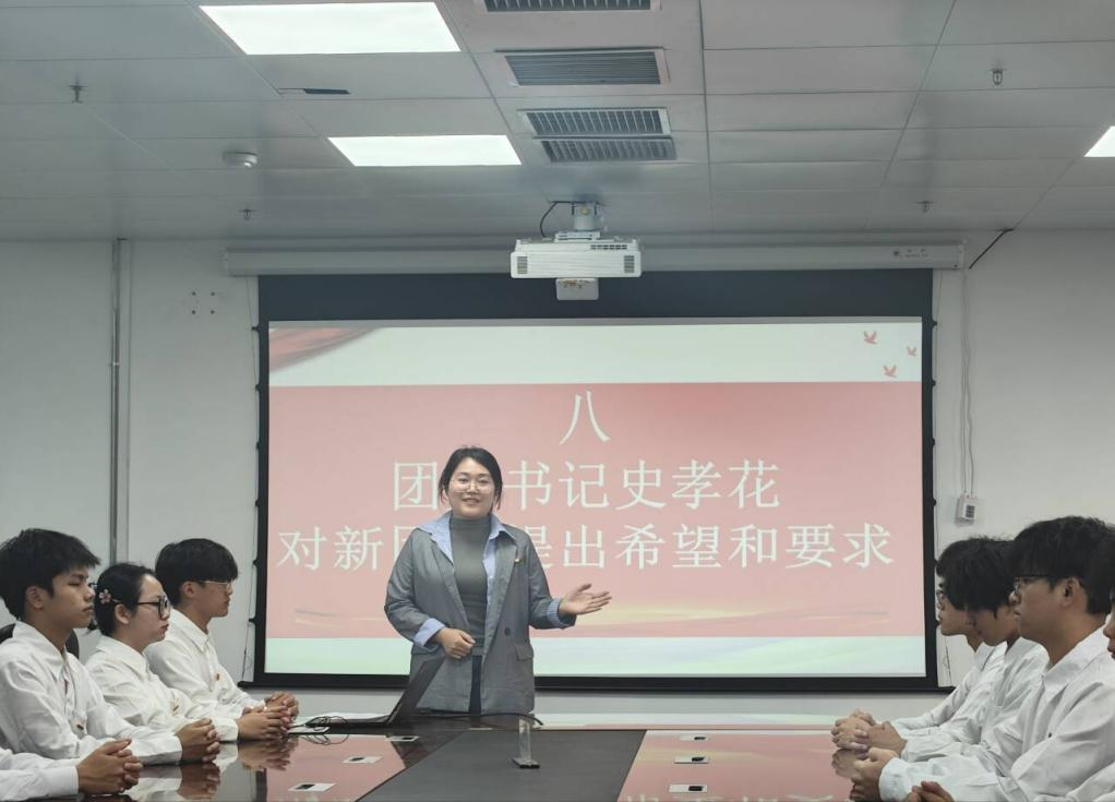 团委书记史孝花向新团员致以热烈的祝贺和诚挚的欢迎,并对新团员提出殷切期望:把团员的先进性融入专业学习和社会实践中,以仁爱之心服务社会、以专业能力报效祖国,在青春的赛道上跑出当代青年的最好成绩,并鼓励全体团员把团徽的荣耀转化为奋进的力量,让青春在奉献中焕发绚丽光彩。