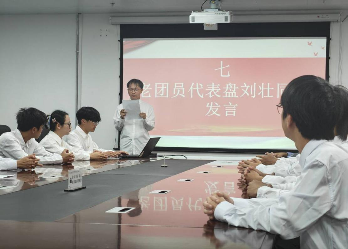 新能源2503班盘刘壮作为老团员代表发言,他首先向新团员们送上热烈祝贺,分享了自己加入共青团的初心和感受,并表示将牢记团的宗旨,勇于担当、积极作为,为祖国的繁荣发展贡献青春力量。
