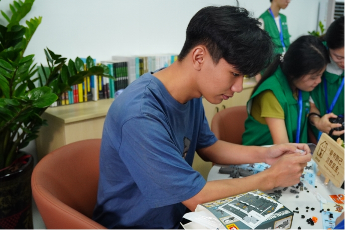 拼搭乐高积木玩具是一种培养学生们沟通表达能力、问题解决能力、自我学习能力和创新实践能力的有效途径,既能培养学生的动手能力,又能在操作过程中充分挖掘学生的创造力和团队合作能力。参与活动的同学们充分发挥了自己的想象力、创造力以及动手能力,虽然同学们在组合构建积木的过程中遇到了些许困难,但同学们最终依旧克服困难,将各个零部件精准组合,构建成完整的积木。