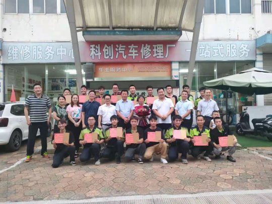 8月6日,为期6个月,40位在南宁科创汽车修理公司(汽车后市场)跟岗实习的交通工程学院学生今天圆满完成实习任务!科创汽车修理公司根据他们的实习情况给予了奖励,我院领导教师出席了颁奖仪式,院长彭朝晖亲自给获奖者颁奖。半年的跟岗实习,学生评价只有两个词:1、"成长"(成长了心智与服务意识);2、"养成"(养成了企业所需的职业素养)!交通工程学院(汽车产业学院)在今后的人才培养工作中,定将一方面定位于充分发挥学校深厚的"机"与"电"办学特色,瞄准汽车制造行业培养现代制造技术技能人才;另一方面利用二级学院多年培育的汽车维修行业校企合作资源,瞄准汽车维修市场培养服务型技能人才!我们有志于将"为党育人、为国育才"的目标有效转化为一项项融入课程思政的教育教学活动!