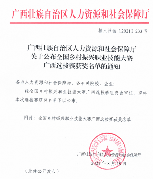 2021年7月29日,我学院冯志勇老师,赵夫贵同学,参加了全国乡村振兴职业技能大赛广西选拔赛。在比赛前,他们排除各种艰难,克服种种困难专心训练,比赛时他们竭心尽力的角逐在各项比赛中,最终获得较好成绩。冯志勇老师获得汽车维修工职工组第十名,赵夫贵同学获得汽车维修工学生组铜奖。