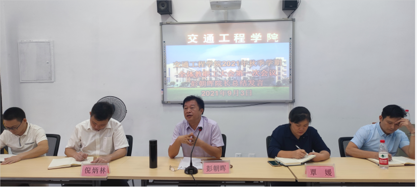2021年9月3日9点30分,我院在新能源汽车技术1+X培训教室,召开了本学期第一次教职工大会,大会由彭朝晖院长主持,应到场参会的教职工全部到场,彭院长代表交通工程学院对大家表示衷心的感谢,感谢大家对交通工程学院工作的关心和支持。