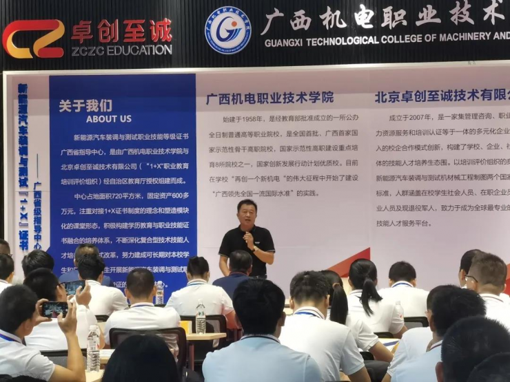 2021年7月21日上午9点,由我院主办的首批《2021年广西新能源汽车技术师资能力提升培训班》,开班仪式在我院汽车技术中心一楼举行,来自全区27所中高职院校的56位老师,将在我院汽车技术中心参加为期6天的培训。开班仪式上,交通工程学院院长彭朝晖教授,北京百通科信机械设备有限公司总工程师邸玉峰,南宁市中联汽保设备销售有限公司总经理任仲雷,分别致词。都表达了对这次培训的期待,并祝愿学员们学有所成。