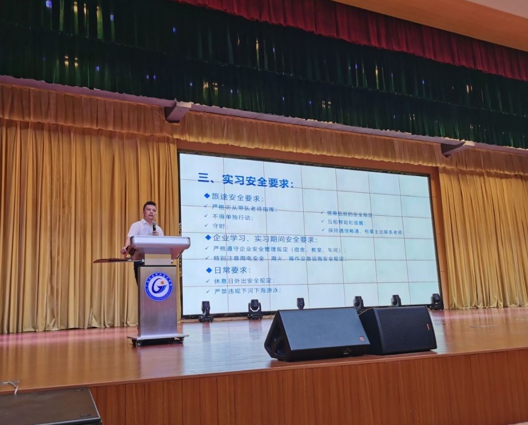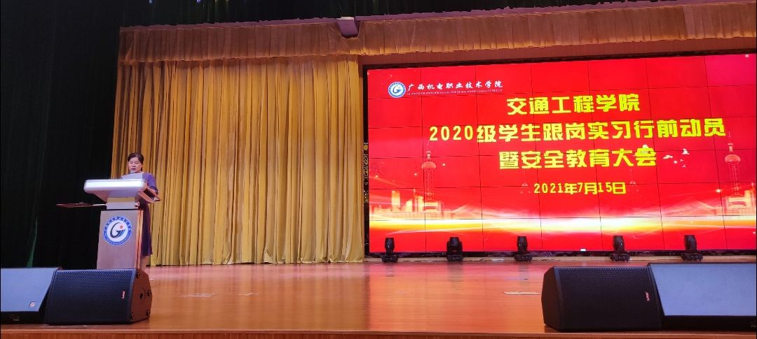 7月15日,我院在学院博远楼6楼小礼堂举行2020级学生跟岗实习行前动员暨安全教育大会,我院班子领导、各专业负责人、实习指导老师、驻厂带队老师、辅导员及2020级全体在校生参加大会。