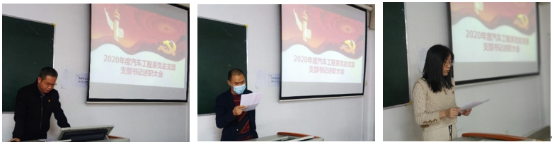 汽车车身专业群党支部书记黎仕增、汽车维修专业群党支部书记刘港和学生党支部书记段方雪依次述职,各支部书记围绕2020年抓基层党建工作履职情况、存在问题及下一步工作思路等方面亮成绩、晒问题、谈打算。