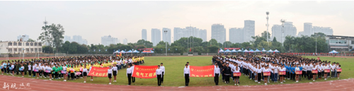 本次运动会以“健康、友谊、超越自我”为宗旨,共有17个专业代表队,1200人次参加 11个竞赛项目的角逐。28日早上8点,运动会开幕式正式开始,在激情昂扬的进行曲中,国旗手、裁判员团队及各专业班级方块队昂首挺胸,迈着坚定有力的步伐依次从主席台前走过。电气工程系党总支副书记喻宁娜老师致开幕词,学生代表梁永健代表全体运动员宣誓,段翊君老师代表全体裁判员宣誓,在精彩的舞狮开场表演后,人文科学系党总支书记、主任付瑶老师宣布运动会正式开幕。