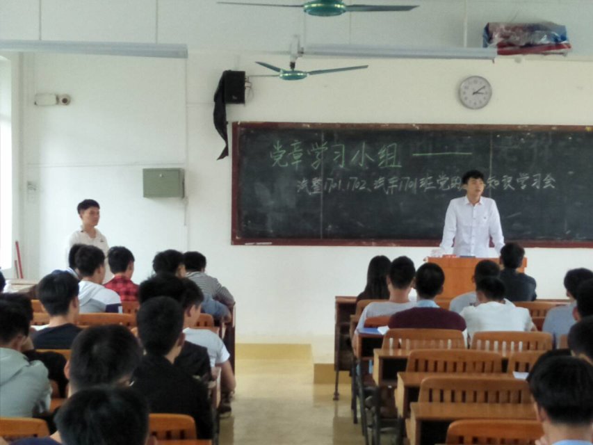 在汽车工程系党总支的号召下,吴德永、黄建伟、韦沈志、邬凤凤、杨智森、李福基、谢聪琨等7名学生预备党员组成党章学习小组,以党章为教材,在2017级七个班级开展了党章学习会。