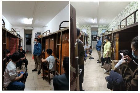 图二 彭朝晖教授、倪炳林副院长到宿舍深入了解同学们返校后的学习及生活情况