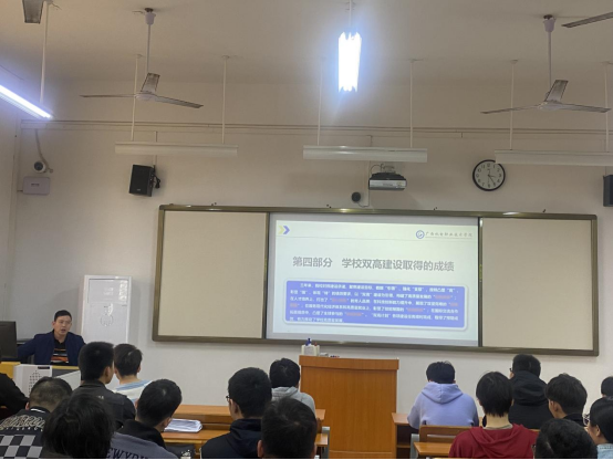 林世明副院长从三年来我国抗疫防疫的历程及取得的重大决定性胜利、“乙类乙管”后的疫情防控、中国式现代化与中国职业教育未来专业发展的契机、学校双高建设取得的成绩等几个方面为同学们进行了深刻解读。引导广大同学深刻认识中国共产党是为中国人民谋幸福、为中华民族谋复兴的党,也是为人类谋进步、为世界谋大同的党。同时,通过授课,引导同学们充分认识和理解职业教育在中国式现代化进程中的重要作用,从学校双高建设取得的经验和成绩当中,明确未来职业发展方向,努力学习成长为一个实用型人才,为国家经济社会发展和中华民族伟大复兴贡献青春和力量。