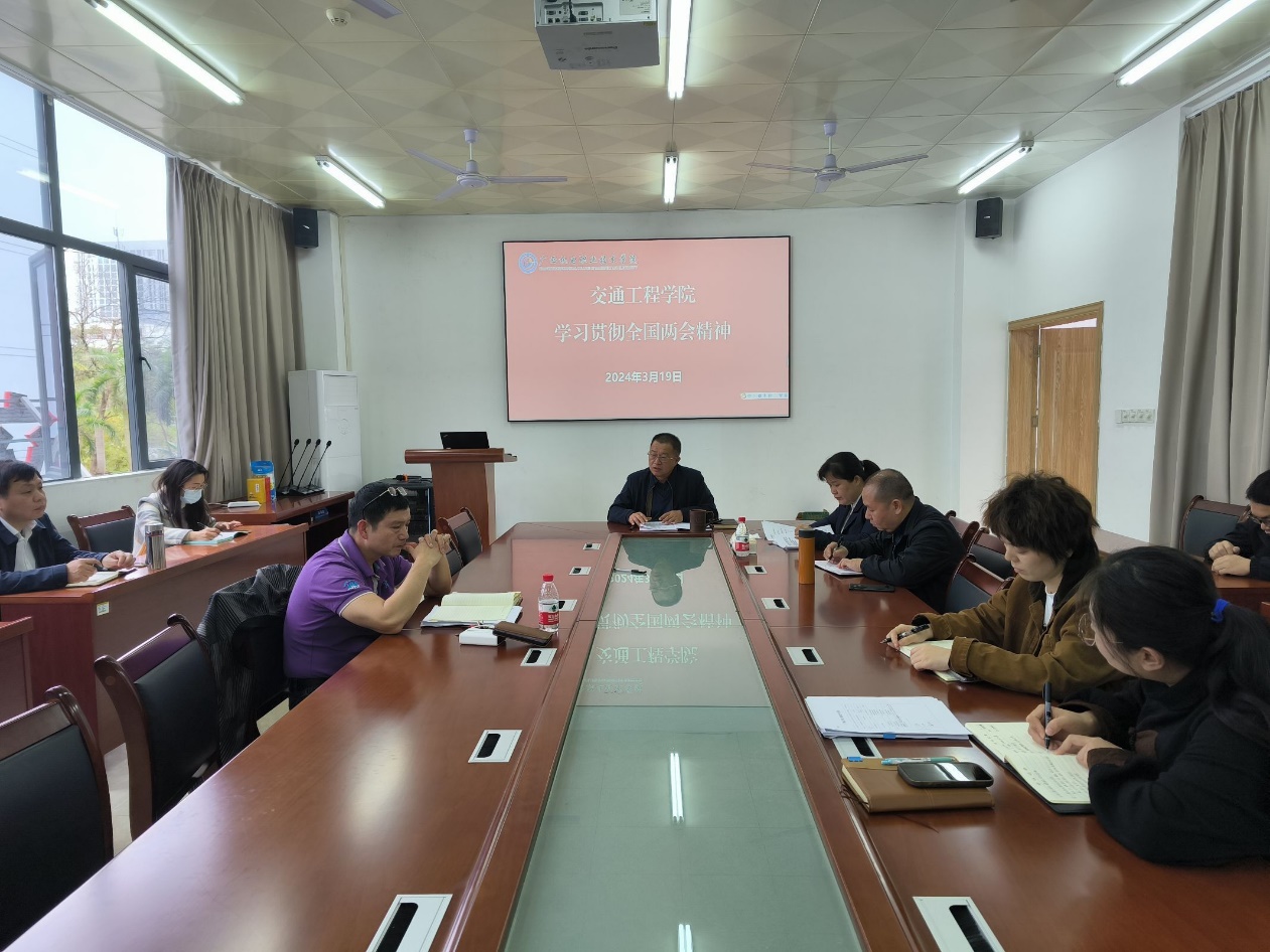 3月19日下午,我院召开学习贯彻两会精神会议,会议由书记、院长彭朝晖主持,交通工程学院全体教职员工参加。