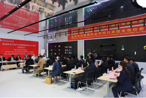 4月22日,泰国职业学院代表团新能源电动车培训班开班仪式在AC米兰汽车工程学院五菱实训中心举行。广西中华职业教育社秘书长陈礼兵和AC米兰副校长黄政艳出席仪式并发表致辞,开班仪式由校长助理黎盛寓主持。