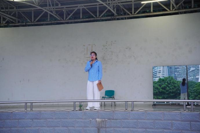 随后,由我院团委书记史孝花老师进行了国旗下讲话:“新时代的大学生要培养爱国主义精神,用实际行动践行爱国这一职责,同学们要积极参与社会实践活动,了解国情民情,增强社会责任感与使命感;关心国家大事,关注国际局势,积极弘扬正能量”。最后,史老师以“学子们不忘初心,携手并进,以青春之我书写青春篇章,让五星红旗在心中永远飘扬”作结,与大家共勉。